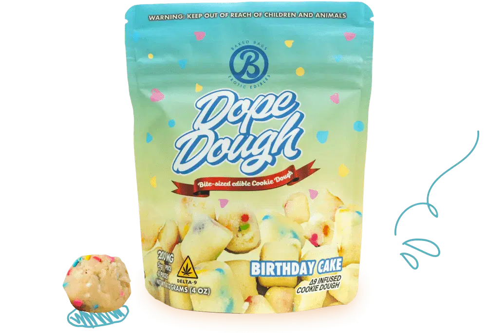 Baked Bags Birthday Cake Dope Dough | Essbare Delta-9-THC-Keksteigprodukte