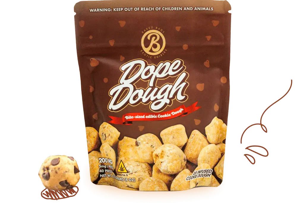 Dope Dough-Esswaren sind Gourmet-Keksteighäppchen, die mit aus Hanf gewonnenem Delta-9-THC angereichert sind. Jeder Beutel enthält 200 mg THC und bietet eine köstliche Möglichkeit, D9-Esswaren zu erleben.