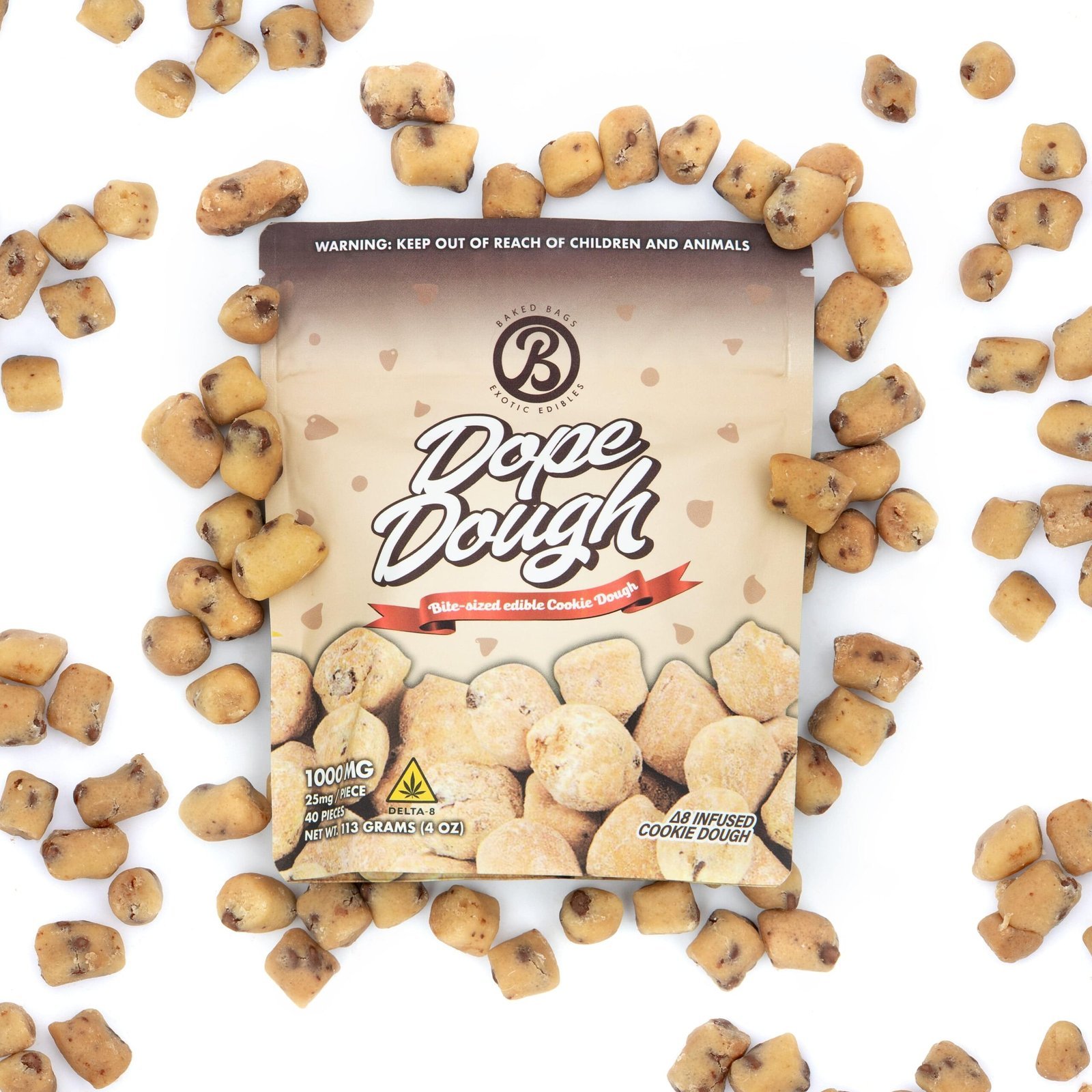 Our Delta-9 THC cookie dough bites feature 200mg of Delta-9 THC in each bag for maximum effects. 40 pieces of dough per bag equaling 5 mg each piece.